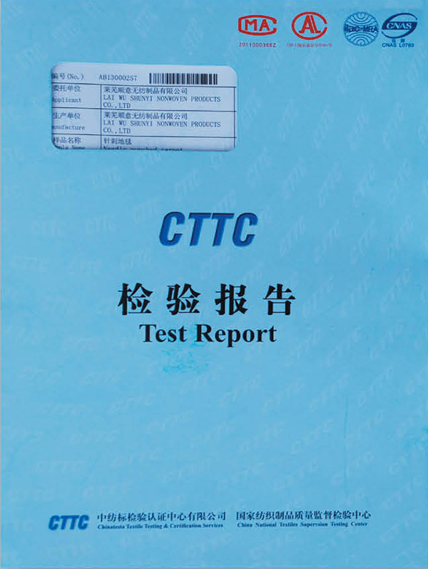 • 本公司生產的無紡阻燃地毯檢測合格